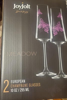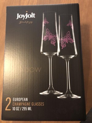 JoyJolt Meadow Butterfly Crystal Champagne Glass – Set of 2 - 10 oz. Champagne Flute Glasses
