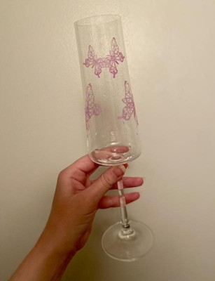 [This review was collected as part of a promotion.] These champagne glasses by Joy Jolt are gorgeous. They are delicate but sturdy. I love how they are tall and those purple butterflies omg. I just love these so much.