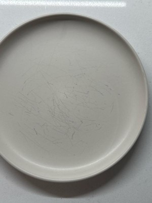 bought these plates in beige and am very disappointed in the quliaty. after just one use there were significant scratches on the plate. now they just look dirty.