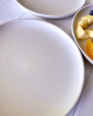 [This review was collected as part of a promotion.] Generally, I do really enjoy these Mesa Stoneware Salad Plates by JoyJolt. I received the shade Matte Linen, which is a really lovely, light, neutral, off-white sort of shade. I really love the lip on the plates because it makes them slightly bowl-like, which I always like and just find it makes things more convenient. However, while the plates look lovely from far away, they unfortunately all have clear imperfections on them. Each one has an imperfection on the surface as if the glaze dripped or was not smoothed away. It doesn’t look charming in a handmade way, it looks like an error. Additionally, the rim on the bottom of the plates is not coated and is quite rough and scratchy, so you need to be careful to not scratch the table or the other plates. Overall, I definitely love the shape of these. If the overall quality was a bit improved, and the bottom rim glazed/coated, they would be perfect.