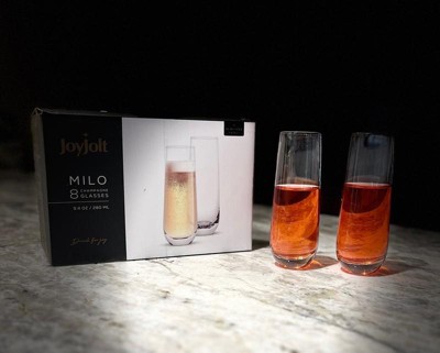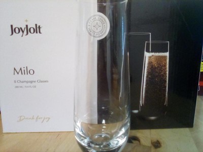 [This review was collected as part of a promotion.] I fell in love with the Milo champagne glass set! They are stemless and perfect for mimosas! I have been adding to my glassware set and I instantly knew I had to have these! They are a simple, but sleek glass set. They are dishwasher safe. And they store so easily! I highly recommend!