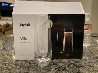 [This review was collected as part of a promotion.] I love my set of 8 Milo 15.5 oz Champagne Glasses! They are made with every user in mind with the design and style of them. They feel light in your hand and the size give you a perfect snugginess in your hand as you hold it. They are lead free and dishwasher safe.... can one say "BONUS?!" Well i think so because clean up is a cinch! The set being 8 makes for the perfect little get together with family and/or friends. Just pour a glass of some bubbly with a pineapple or strawberry chunk and you'll be in total bliss. They are also great for date night with your fella. Paired with a nice home cooked meal! You just can't go wrong hehe!!