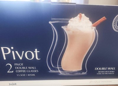 [This review was collected as part of a promotion.] JoyJolt Pivot double wall Expresso glasses come in set of 2 and hold 13.5 oz. These cups are super cool looking. They have a strong texture of glass making them very durable. They are great at keeping my drinks nice and cold and well held. I love my cups.