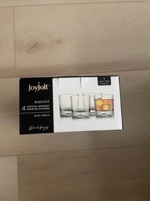 JoyJolt Radiant Crystal Whiskey Glass - Set of 4 Old Fashioned Crystal Glass - 10 oz