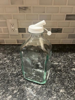 - EASY TO GRIP, SPILL PROOF POUR: Each 64oz large glass bottle features a textured, indented grip that is as easy to hold as it is satisfying! It goes without saying, it’s easier to shake than a pitcher or jug. And when it’s time to pour, snap on the silicone dispenser cap for a spill proof stream of liquid.