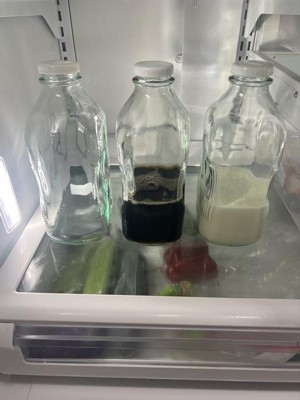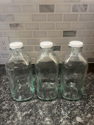 JoyJolt Reusable Glass Milk Bottle with Lid & Pourer - Water or Juice Bottles with Caps - Set of 3