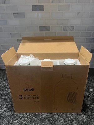 Product Name: JoyJolt Reusable Glass Milk Bottle with Lid & Pourer - 64 oz Water or Juice Bottles with Caps - Set of 3