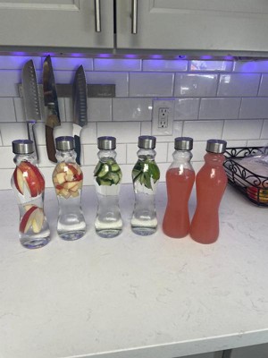 [This review was collected as part of a promotion.] I have to say Iove these glass bottles. These can be used for more than just water or juice. Such as storing a dressing for salads or a homemade sauce. But I use them for my infused water by added veggies and fruits. They are a bit heave as they are after all glass....so don't drop them!! Plus....less plastic in the world and reusable time and time again!