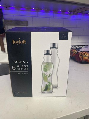 JoyJolt Spring Glass Fluted Water Bottles with Stainless Steel Cap - 16 oz Glass Juice Bottles - Set of 6