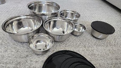 - Stainless Steel Bowls, Airtight, BPA-free Plastic, Black Lids
