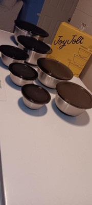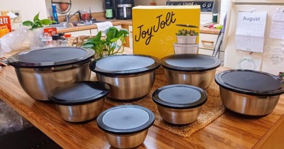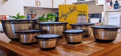 JoyJolt Stainless Steel Mixing Bowls with Silicone Base & Lids - Set of 7 - Silver/Black