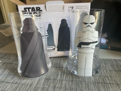 [This review was collected as part of a promotion.] These were a gift for my husband who loves Star Wars. Very neat to have. He enjoys them perfect size and a heavy glass. Well done picture of the storm trooper and darth Vader. Looks a little like the Lego people to me.