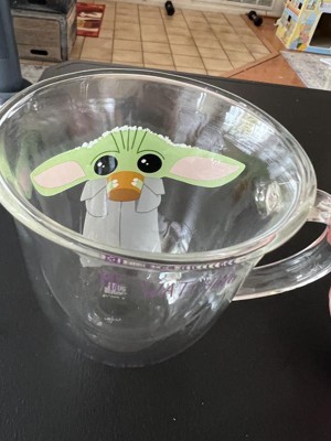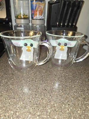 [This review was collected as part of a promotion.] These Star Wars The Mandalorian glass mugs are so nice. They are 13.5 oz and larger than your average-sized coffee mug. The mugs are double-walled glass and lightweight. Honestly, these are the most adorable mugs. My wife and I use them every day for our coffee; they still look brand new. The quality of the mugs is excellent, and the image is so cute whether or not you are a Mandalorian fan.