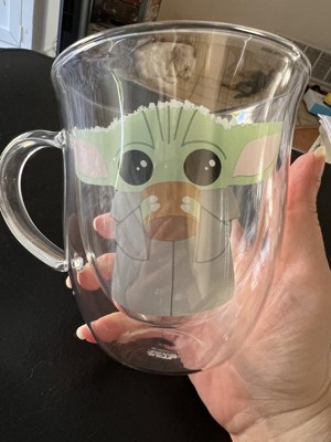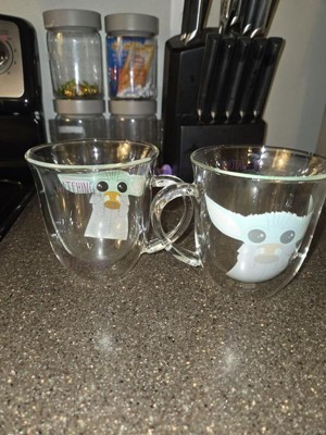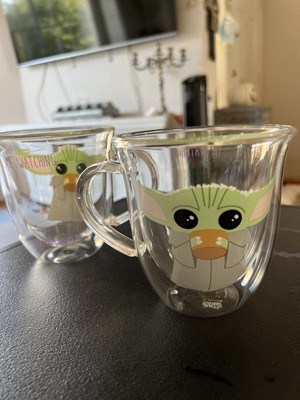 JoyJolt Star Wars The Mandalorian Watching the Drama Double Wall Glass Mugs - 13.5 oz - Set of 2