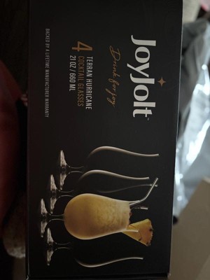 [This review was collected as part of a promotion.] I love my new joy jolt Terran hurricane cocktail glasses.I love they come in set of four.The joyjolt hurricane cocktail glasses are by far the best quality that I have had in a long time.They are the best joyjolt hurricane cocktail glasses and I love the size is just perfect.I highly recommend this product.