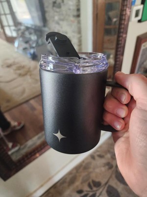 [This review was collected as part of a promotion.] I really like the little mug. It’s actually quite decent size I switch to using this mug without the lid at home because it just keeps the coffee just a little bit warmer than a regular mug. It’s a perfect size. I like the look of it as a really nice flat black finish Lid fits really tight it’s very secure very sealed which is nice. I haven’t noticed any scratches on the finish.