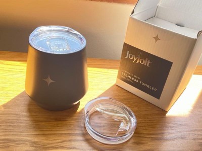 [This review was collected as part of a promotion.] I like the design of the Joyjolt stainless tumbler. It has a more masculine shape to it, rather than a regular wine glass. I loved that it came with two different lid options, BUT the lid with the closer on it leaks, making it a deal breaker. It did keep drinks cold and hot for a relatively long time and was simple to clean.
