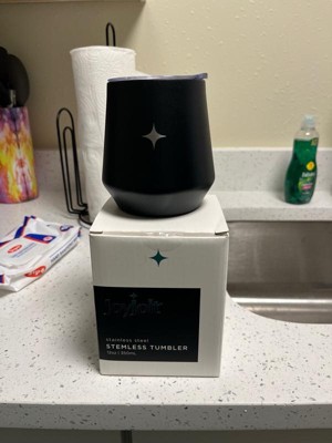 [This review was collected as part of a promotion.] I really like the shape of this cup to start. There are a lot of stemless cups out there that are all roughly the same shape but to see this shape is refreshing! I love the simple icon/logo on this; the whole design is kinda futuristic looking to me. I like that it came with the 2 lids and that it can hold hot or cold drinks. I really liked that whether it was boiling hot or ice cold it kept the temperature perfect on the outside so you can comfortably hold it no matter what. The only issue I have is that the rim of the cup I received was slightly rough in some parts so if you drank it with no lid on it's a bit uncomfortable in those spots. Overall it's a pretty useful and stylish cup.