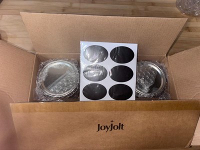 - MEASURE IT, CAN IT, LABEL IT! Pickling is pure joy with JoyJolt Mason Jars because every jar in this set features with measurement markings (cups/oz/ml) and black chalk labels so every preserve is accurately measured and labelled. Set includes 6 Jars, 12 Canning Lids, 12 Bands, 12 Adhesive Labels.