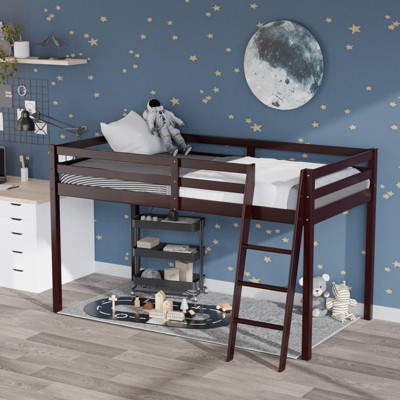 JOYMOR Solid Wood Low Twin Over Twin Bunk Bed for Kids/Junior, Bunk Bed Frame with Guardrails & Ladder for Boys Girls, No Box Spring Needed Gray