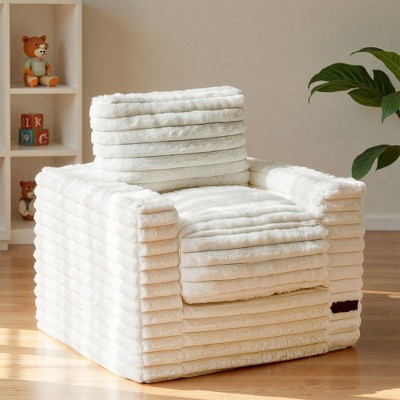 2.Cloud-Like Comfy Experience:Wrapped in gradient teddy fleece upholstery, the soft surface feels like sitting on a cloud. The ergonomic contouring (seen in the pics) cradle kids comfortably during reading or play.