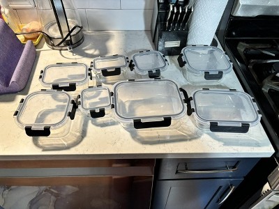 The glass food containers are exactly what I needed. They arrived with no damage, lids fits firmly & stackable. I washed lids by hand & containers went into dishwasher. Price was good compared to other places. I would recommend theses because they go from freezer, oven, microwave & fridge with tight lids to hold food or liquids & easy open/closing of lids.