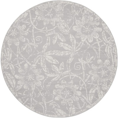 Jubilant JUB09 Indoor Area Rug Farmhouse Vintage Damask By Nourison Grey 8' x round