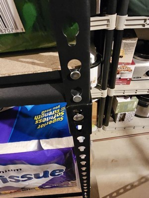 You never have to worry about storing your items loosely in garages, basements, pantries, warehouses, or any other unorganized space. With this robust yet functional storage unit featuring 5 shelves, you can finally transform any cluttered home or office space into a spotless and organized one. The particleboard shelves adjust in 1.5-inch increments for high functionality, optimal convenience, and long-term storage use. Supporting loads up to 4,000 pounds when evenly distributed, this utility storage shelving unit is capable of supporting the weight of heavy tools and accessories, perfect for use in your garage, workshop, or even in your laundry room.