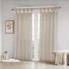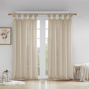 Add a soft, romantic touch to your home with this Tab Top Sheer Curtain Panel featuring removable floral pins. Crafted from lightweight faux linen with a loose open weave, this panel delivers a breezy, airy look while gently filtering natural light. The solid white design and tab top header bring a casual elegance, perfect for shabby chic or cottage-style decor. Each panel measures 50" x 84" and fits curtain rods up to 2" in diameter. For standard window coverage, two panels are recommended. Machine washable for easy care—just remember to remove the decorative flower pins before laundering. Some wrinkling may occur due to the natural fabric texture and can be smoothed with light ironing or steaming.