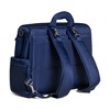 Love the updated design from JuJuBe on this Satchel Diaper Bag which works well as a multi-purpose bag even beyond the diaper years. The multitude of straps allow carying at least 6 ways: by hand; as backpack; messenger/ shoulder bag; hanging from a stroller; & on top of a roll-a-board suitcase - awesome for traveling parents! The sleak design is gender neutral, and modern but still machine washable & can easily pass as a regular packpack. Plenty of pockets for anything/ everything including a pocket for a thin laptop or ipad at the back & quick access pockets for bottles, phone or other frequently accessed items.