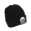 Power up your winter look with this black Jujutsu Kaisen cuff beanie. Featuring embroidered art of Gojo in a purple circle above bold white lettering of his name, this beanie brings anime style into your cold-weather gear. Crafted from acrylic knit materials, it provides warmth and durability for daily wear. This beanie is one size fits most. For simple care, hand wash it in cold water and lay it flat to dry.