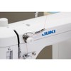 - Float Function: Same mechanism as JUKI industrial sewing machines for preventing uneven sewing on quilts and velvet, as well as stretched stitches on knit fabrics. The presser foot floats 0 to 2mm above the material.