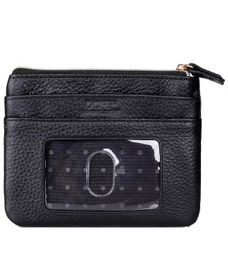 - Naturally Milled Butter soft Leather Hudson Pik-Me-Up I.D. Coin / Card Case features a top zip main compartment, pull-out I.D. window with credit card slots, front zipper pocket and back I.D. window and slip pocket.