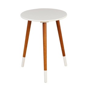 Complement your living area with the Julia end table from Buylateral. Featured with honey finished tapered legs accented with tipped colored feet and a round top provide a sleek sense of style. The Julia table is the perfect side table in any room, fitting easily next to a chair or sofa. Available in Black, Gray, White and Mint, there are endless placement opportunities for this table as it pairs well with most interiors.