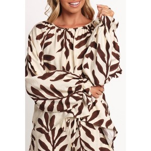Step out in style with the July Long Sleeve Smock Top in Brown Palm. With its effortlessly chic design, this top boasts a round neckline and breezy long sleeves finished with elasticised cuffs for a touch of casual elegance.