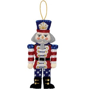 Bring patriotic flair to your handmade holiday collection with the July Nutcracker Felt Ornament Kit. Featuring classic nutcracker details with a red, white, and blue twist, this festive design is a bold and cheerful way to celebrate American pride. From the stitched uniform to the shimmering embellishments, every element adds character and charm. Ideal for experienced crafters who love unique, seasonal ornaments.