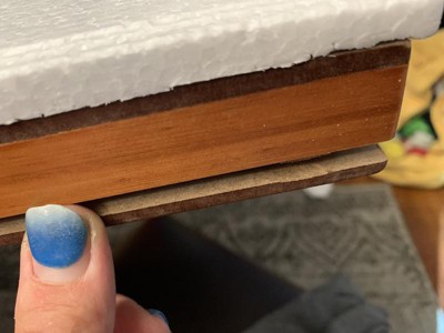 Item had a strong smell of hay upon arriving (even after being unboxed for awhile) and magnets on drawers did not work.
