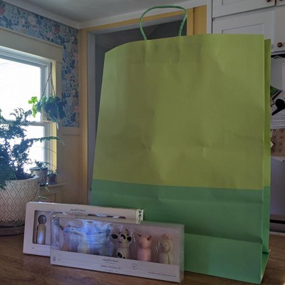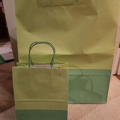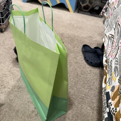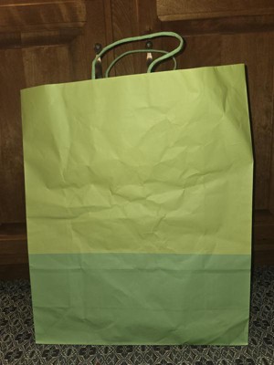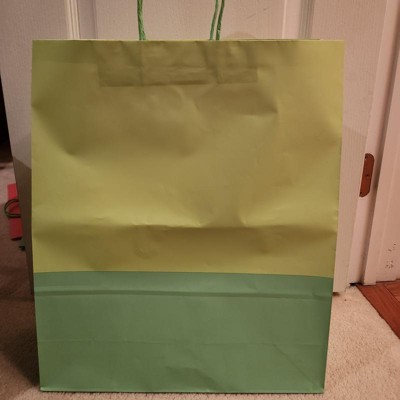 [This review was collected as part of a promotion.] I bought this extra large green color block gift bag using Drive Up. The bag itself is nice. However, I wish I had went inside to buy it since they dropped it off into the car a bit crinkled. Overall, it seems like a good quality large bag. The color block with the two green tones is very sophisticated. The bag can fit a lot of small things or a large item. I don’t think it has the highest weight capacity so don’t put anything heavy as a gift inside. I received an incentive to write this review.