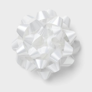 Add sweet style to your wrapped gifts with this Jumbo Metallic Bow from Spritz™. This large decorative bow features white ribbon strands in a metallic finish arranged into a blooming flower-like shape to add the perfect finishing touch to your presents. Simply paste this decorative white bow on your wrapped gift or gift bag for eye-catching flair, making it great for birthdays, anniversaries, baby showers, or any other special day or occasion.