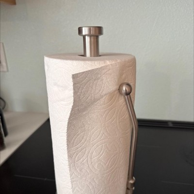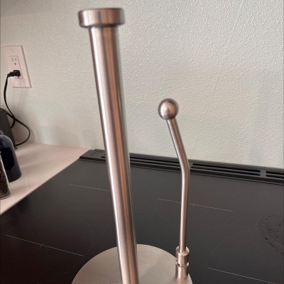This product arrived dented as the packaging did not protect the contents which was disappointing. I was seeking arm that held the roll close to the center spindle for easy even tearing. However the product does not have enough "spring function" to hold the decreassing circumferance of the paper towel roll as it is used. Oddly the arm only "springs" when the roll is new and large on the spindle. This product is of a lower standard in weight and function than the OXO Simply Tear paper towel holder also sold at Target Stainless steel. Buy the OXO paper towel holder instead.