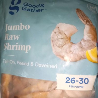 Jumbo Tail-On, Peeled, Deveined Raw Shrimp - Frozen - 26-30ct/lb - 2lbs - Good & Gather™