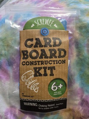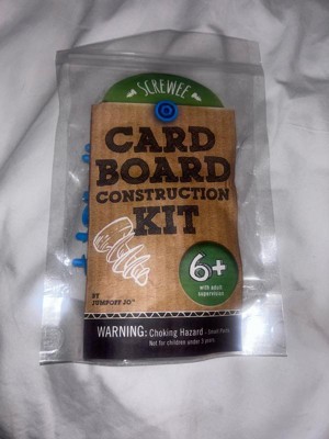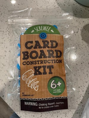 Screwee Cardboard Construction Kit by JumpOff Jo The Screwee Cardboard Construction Kit by JumpOff Jo includes everything you need to facilitate your little engineer, architect, or artist—just add cardboard! Included in Package: 36 Total Cardboard Screws (18 Long Screws & 18 Short Screws) 1 Screwdriver 1 Cardboard Saw How Does It Work? Our special cardboard “saw” does double-duty as a hole punch for starting screw holes. Assembling your first creation is easy! Simply overlap the two pieces of cardboard where you want to connect them with a screw. Use the hole puncher to pierce a hole through both sheets of cardboard simultaneously. Using the Screw Driver, twist a screw through the hole, joining the two pieces of cardboard. If you want to create a moveable joint, use a single screw. If your goal is to create a fixed joint, use two or more screws. You’ll be amazed at the things you can build with our Cardboard Construction Kit !