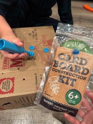 [This review was collected as part of a promotion.] The card board construction kit by screwee is loads of fun! This kit makes assembly of card board projects a breeze. The design of the tools is perfect for little hands yet durable and versatile enough for an adult to use to breakdown boxes on the daily. With plenty of screws I think this kit is a great value and would recommend for your next cardboard craft!