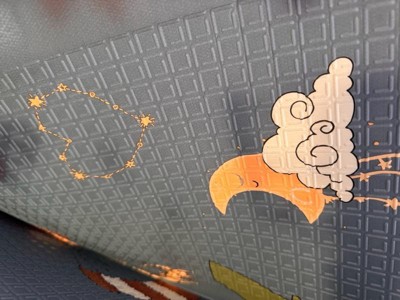 [This review was collected as part of a promotion.] I received this product for free in exchange of my honest opinion. the JumpOff Jo "Take Flight" play mat. The mat is generously sized at 70" x 59", providing ample space for crawling, tummy time, and play. Its reversible design features charming airplanes and hot air balloons on one side, and a more subtle pattern on the other, making it a versatile addition to our living room. It's also foldable, allowing for convenient storage when not in use. The JumpOff Jo "Take Flight" play mat is a versatile and functional play space for our child. With its reversible design, soft foam surface, and waterproof material, it's perfect for playtime, tummy time, and cleaning up spills. It's also foldable, allowing for convenient storage when not in use. Overall, the JumpOff Jo "Take Flight" play mat combines functionality with style, creating a safe and enjoyable space for our child to explore and play.