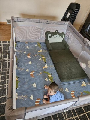 [This review was collected as part of a promotion.] I like this play mat! It folds up nicely for easy storage and is a good size when fully laid out. There is plenty of cushion and we even keep it folded in half sometimes for more cushion and less space when needed. The only downside for me is that it does slide a little on our wood floors, but doesn’t on our carpet. I like that it has designs on both sides to give variety.
