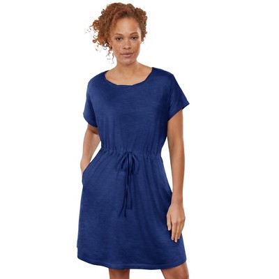 June + Vie by Roaman's Boatneck Plisse Cap-Sleeve Maxi Dress - 14/16, Blue Spruce