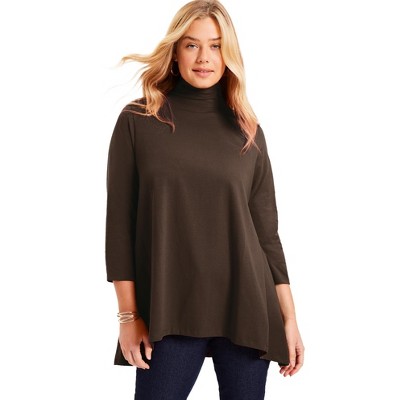June + Vie by Roaman's Lace Yoke Mockneck Top - 1 of 4