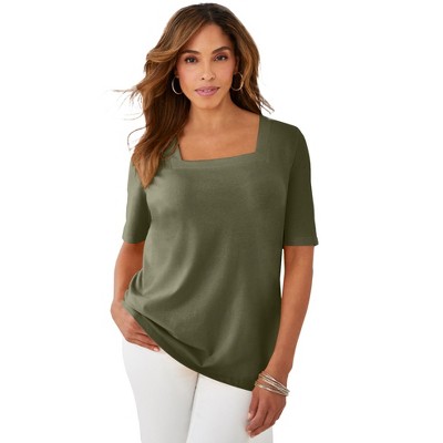 June + Vie by Roaman's Long-Sleeve V-Neck One + Only Tunic - 14/16, Dark Olive Green