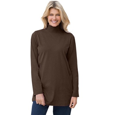 June + Vie by Roaman's One+Only Mock-Neck Tunic - 22/24, Chocolate