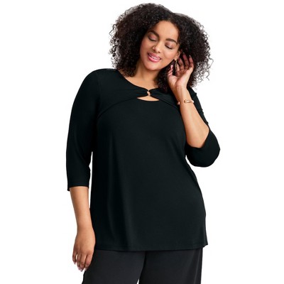 June + Vie by Roaman's Plisse Dolman-Sleeve Cropped Top